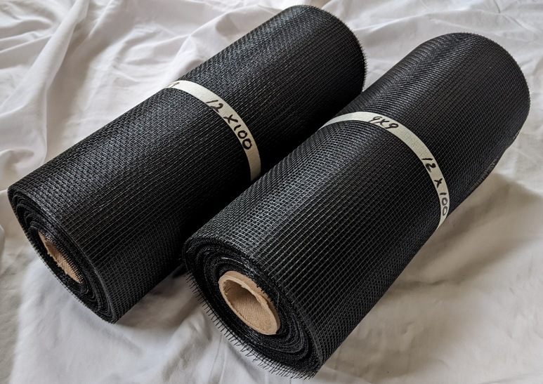 We have a large quantity of 12″ x 100′ rolls of 7×7 Fiberglass Vent Mesh available. These are 2 packs so you’ll recieve 2 – 12″ x 100′ rolls of material. “Vent Mesh” is used for ventilation applications (Gable Vents, Soffit Vents, etc.). “Vent Mesh” is not for window or porch screening applications.
